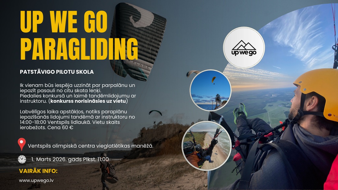 Šī būs iespēja ne tikai redzēt, bet arī sajust, kā ir lidot. Uzzināsi, kā notiek paraplāna apmācība, kāds aprīkojums tiek izmantots un kā tiek nodrošināta drošība. Mūsu instruktori dalīsies pieredzē, stāstos un atbildēs uz visiem jautājumiem – arī tiem, kurus līdz šim neesi uzdrošinājies uzdot.